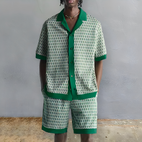 Dieses Herren-Set aus Hemd und kurzen Hosen mit geometrischem Muster Atem wurde geschaffen, um mühelos ein klares und elegantes Aussehen zu bieten. Es besteht aus einem Hemd mit Knopfleiste und passenden Shorts und bietet einen modischen Stil, der ideal für heiße Tage ist. Das leichte und luftige Gewebe garantiert den ganzen Tag über Bequemlichkeit, egal ob Sie sich im Urlaub entspannen, Zeit mit Freunden verbringen oder ausruhen. Das markante geometrische Muster verleiht Modernität und bleibt dabei leicht kombinierbar. Ein unverzichtbares zweiteiliges Set für Männer, die Komfort und Stil schätzen.