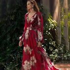 Karine - Langes elegantes Kleid mit V-Ausschnitt für Damen