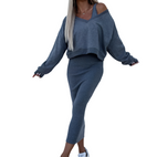 Ein modernes Set mit Pullover und Rock ist die perfekte Kombination aus Komfort und klassischem Stil. Der V-Ausschnitt bringt ein feminines Element ein, und der zarte Stoff garantiert Tragekomfort. Der enge Rock ergänzt das Gesamtbild hervorragend und schafft einen ausgewogenen und eleganten Look. Ideal für den Alltag, das Büro oder besondere Anlässe.