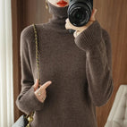The turtleneck provides extra warmth and gives the sweater elegance.