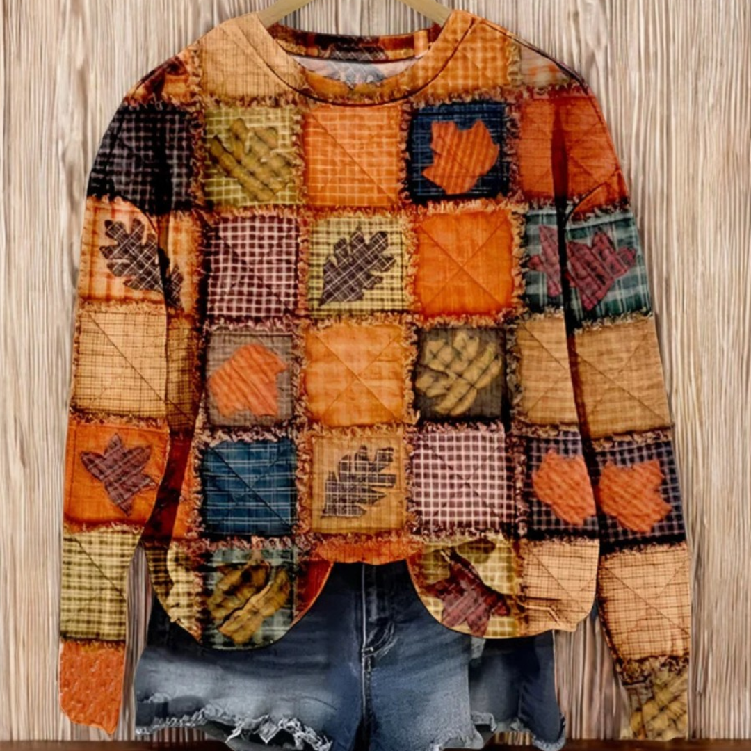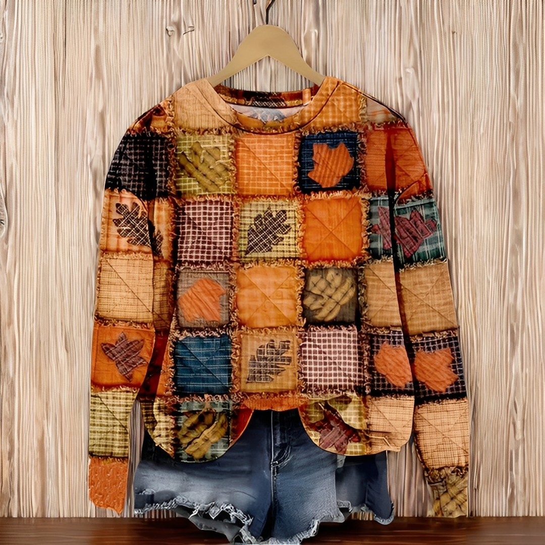 Wygodny styl na każdą porę roku: sweter Alexandria ma unikalny patchworkowy wzór w ciepłych, jesiennych kolorach, które dodają uroku każdej kompozycji. Uszyty z miękkiej i przewiewnej tkaniny, zapewnia maksymalną wygodę na co dzień. Jego luźny fason gwarantuje swobodę ruchów, czyniąc go idealnym wyborem do pracy, codziennych wyjść lub leniwego weekendu. Łatwo go połączyć z dżinsami, legginsami albo szortami, co sprawia, że jest wszechstronnym elementem twojej garderoby. Z Alexandria masz sweter, który łączy przytulną wygodę z przyciągającym uwagę stylem.