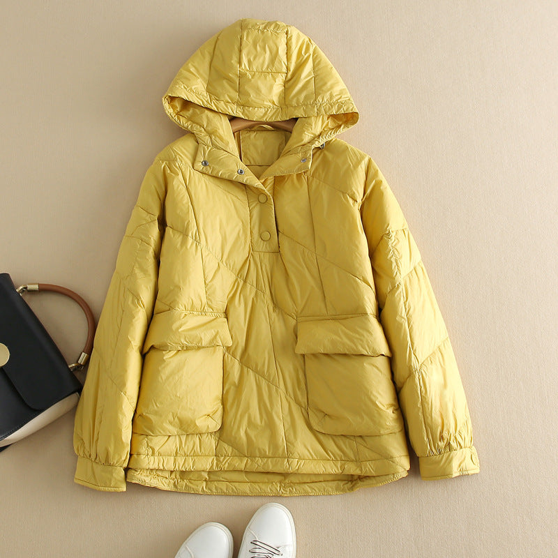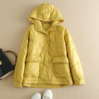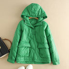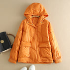 Amery - Kolorowy, luźny damski płaszcz puchowy z kapturem