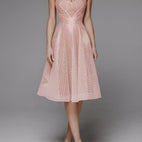 Krystale – Sukienka w linii A z dekoltem w serek i zwiewną spódnicą
