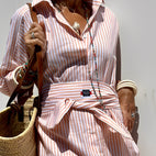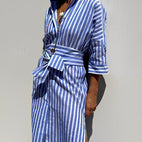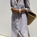 Ulepsz swój codzienny strój naszą długą sukienką polo Christel dla kobiet, w klasyczne paski. Stworzona z eleganckim kołnierzykiem polo i miękkim, przewiewnym materiałem, zapewnia styl i wygodę przez cały dzień. Jej długa sylwetka dodaje jej zadbanego i eleganckiego wyglądu, idealna na luźne wyjścia, do pracy lub na spotkania z przyjaciółmi w weekend. Ponadczasowy wzór w paski dodaje odrobinę wyrafinowania, zachowując naturalny szyk stroju. Niezbędny, uniwersalny element garderoby, ta sukienka łączy nowoczesny styl z codziennym komfortem dla kobiet ceniących wygodę i modę.