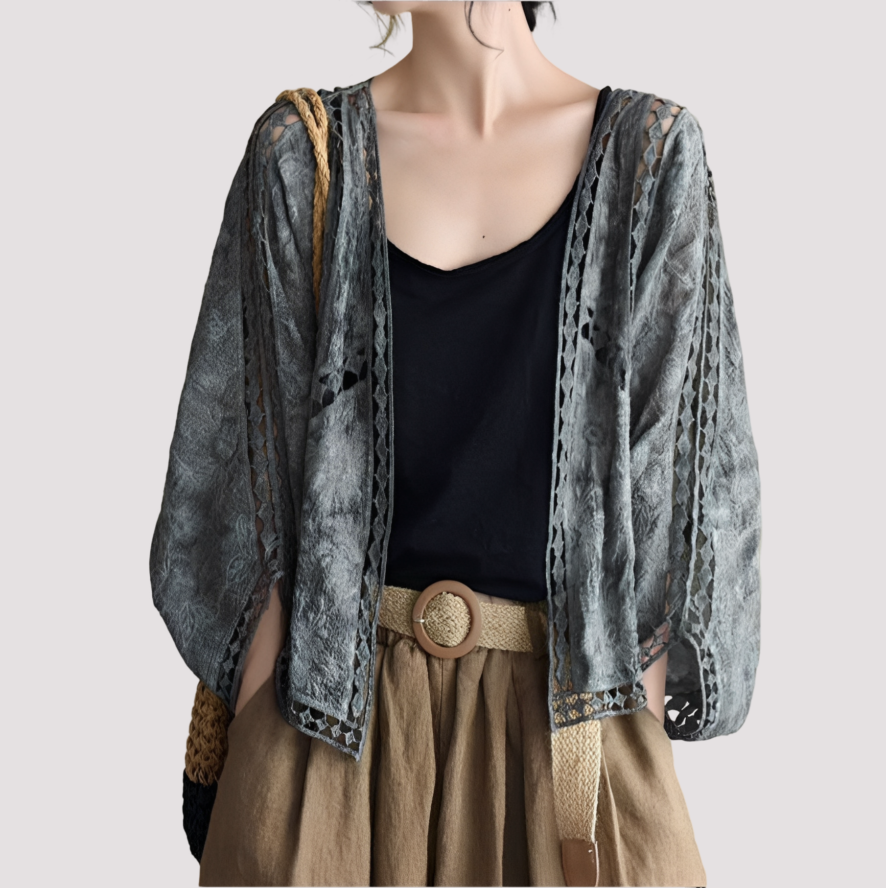 Ta dzianinowakurtka zachwyca wyrafinowanym wzorem wycięć i nowoczesną strukturą żakardową. Lekki, oddychający materiał zapewnia przyjemne uczucie noszenia i czyni ją idealną na okres przejściowy. Dzięki otwartemu, przewiewnemu wykonaniu powstaje stylowy wygląd o wyjątkowym charakterze. Idealna do narzucenia na eleganckie lub swobodne stroje.