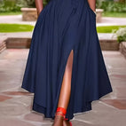 ZIMOWA WYPRZEDAŻElianna – Stylowa sukienka midi z asymetrycznym dekoltem