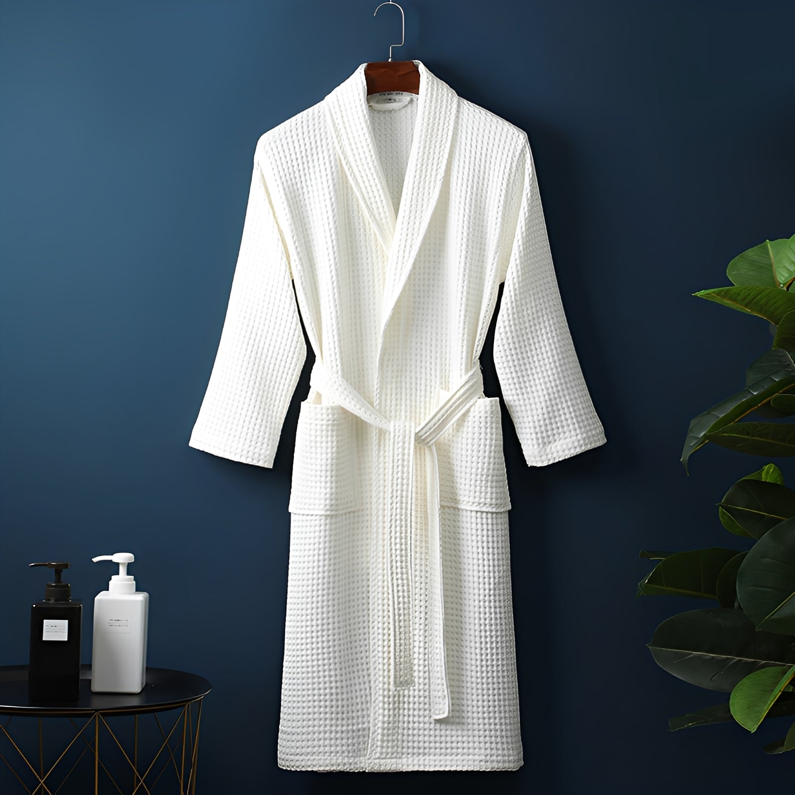 Szlafrok Dunstan łączy dobrą bawełnę z eleganckim, ponadczasowym stylem. Miękki materiał daje przyjemne, ciepłe uczucie i dobrze wchłania wodę. Luźny fason i klasyczny pasek czynią go idealnym na chwile relaksu w domu, spa lub po kąpieli.Dlatego ‚Dunstan‘ powinien być w Twojej szafie:Wysokiej jakości bawełna dla miękkości i absorpcji