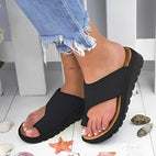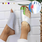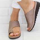 Beatrice – Skórzane sandały na koturnie z regulowaną klamrą ortopedyczną