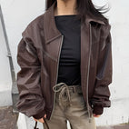 Claudia - Skórzana kurtka biker z kołnierzem stójkowym
