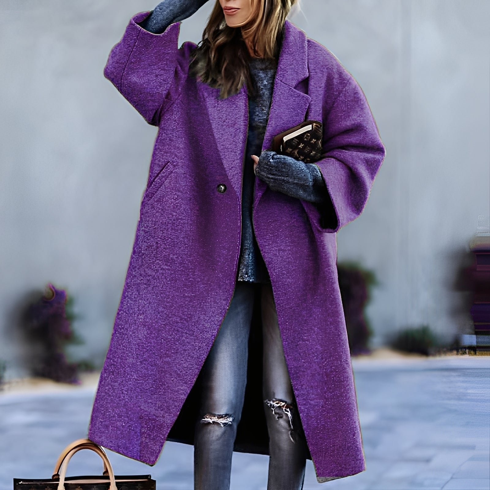 Dannie - Modny, luźny damski wełniany płaszcz