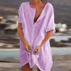 Bawełniano-lniana sukienka casualowa Hilda to połączenie stylu i wygody – idealna na letnie spacery lub spokojne dni w domu. Dzięki przewiewnemu materiałowi i luźnemu krojowi zapewnia komfort noszenia oraz ponadczasowy wygląd.