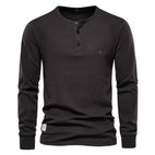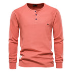 Koszula Jacob z długim rękawem łączy luźny krój z wygodą. Materiał waflowy dostarcza ciepła i jest miękki, a klasyczny okrągły kołnierzyk z guzikami dodaje nowoczesnego charakteru. Można ją nosić z dżinsami, chinosami lub luźnymi spodniami, idealna na relaks, do pracy lub spokojny weekend.