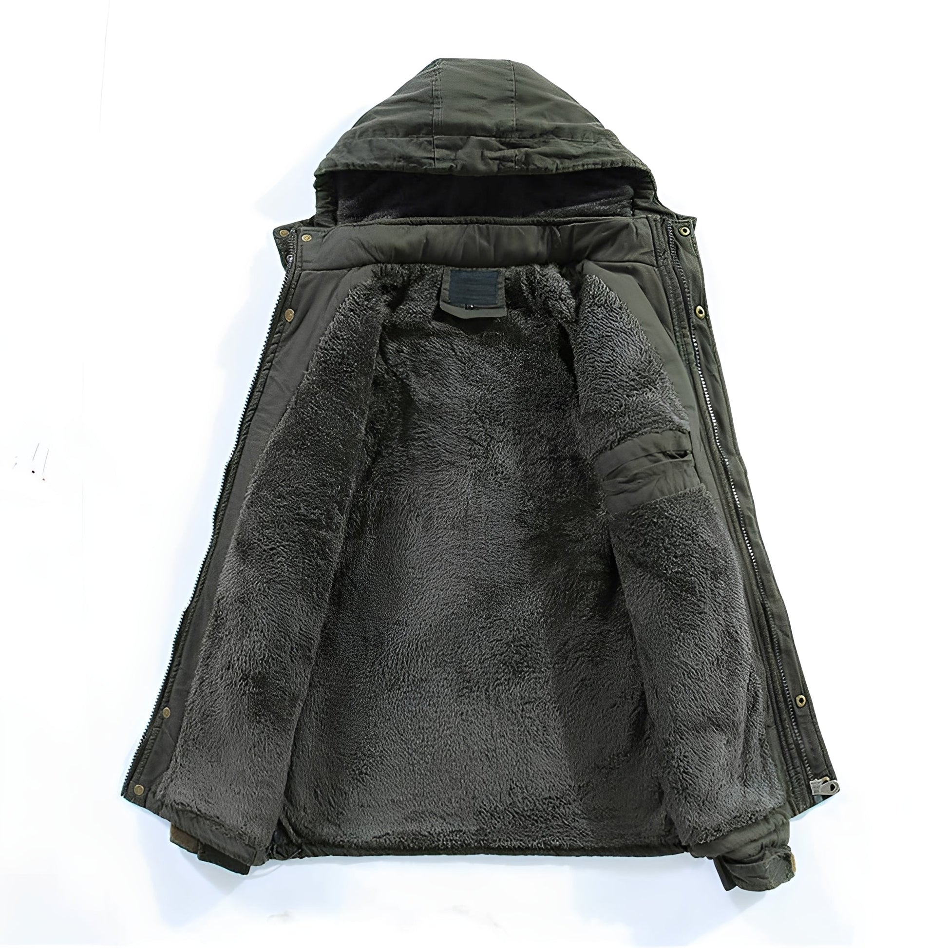 Adrian - Ciepła męska kurtka z kapturem do noszenia na zewnątrz