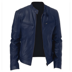 Claudia - Skórzana kurtka biker z kołnierzem stójkowym