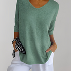 Ożyw swój codzienny styl dzięki dzianinowej górze Jessé z dekoltem w serek, która jest wygodna, elegancka i wszechstronna.