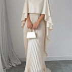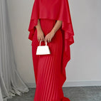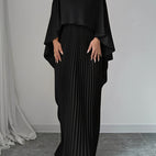 Długa sukienka Katherine wyróżnia się wysokim dekoltem, szerokimi rękawami typu nietoperz i lekką, plisowaną spódnicą. Swobodny krój sprawia, że jest wygodna do noszenia, a elegancki design delikatnie podkreśla każdy ruch. Idealna na ważne okazje, kolacje lub wyjątkowe momenty, gdy potrzebujesz efektownego wyglądu.