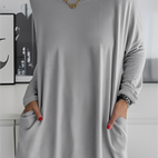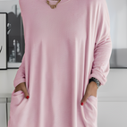 Krystle - Kobieca luźna bluzka z długimi rękawami i kieszeniami