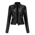 Claudia - Skórzana kurtka biker z kołnierzem stójkowym