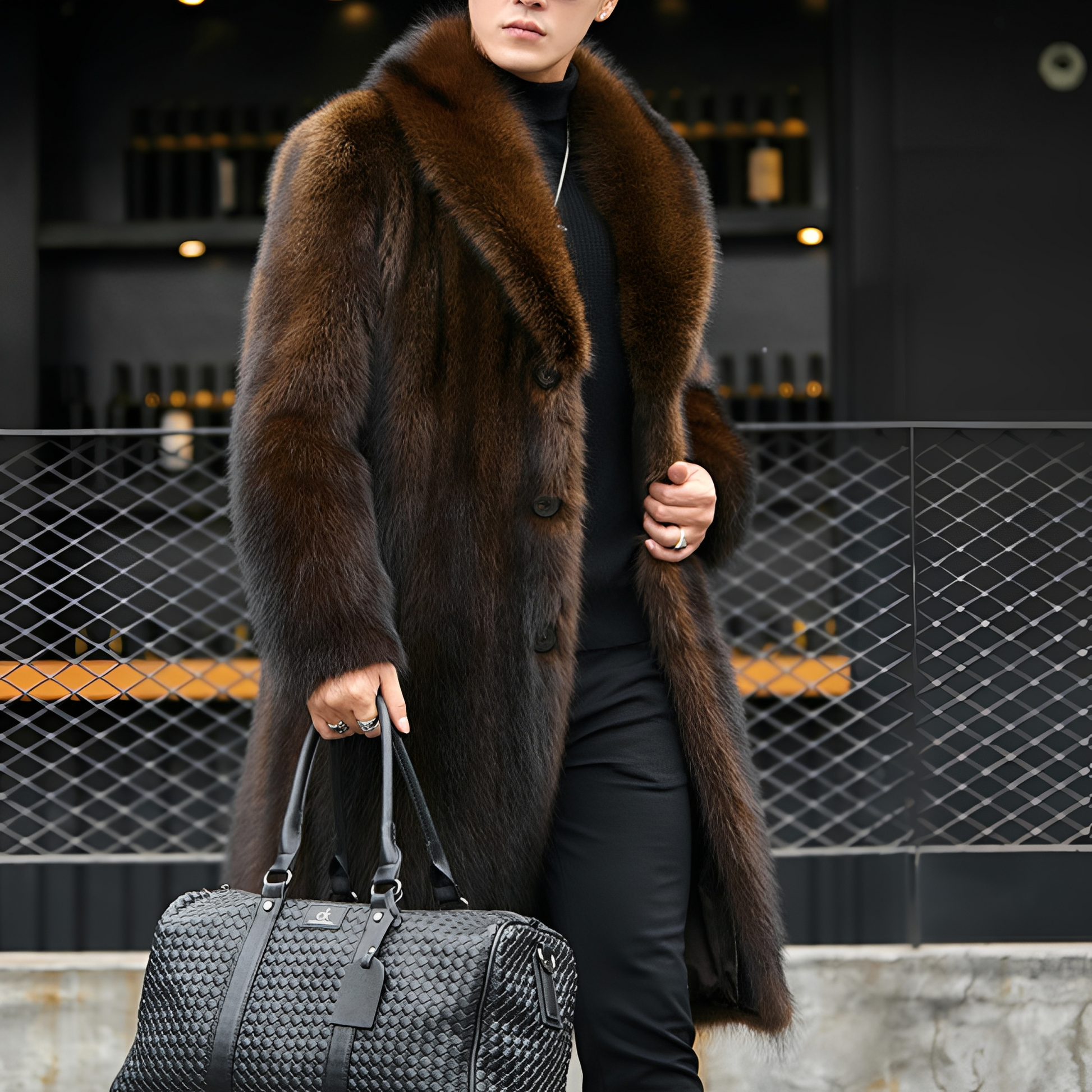Matteo - Stylowy długi futrzany płaszcz dla panów