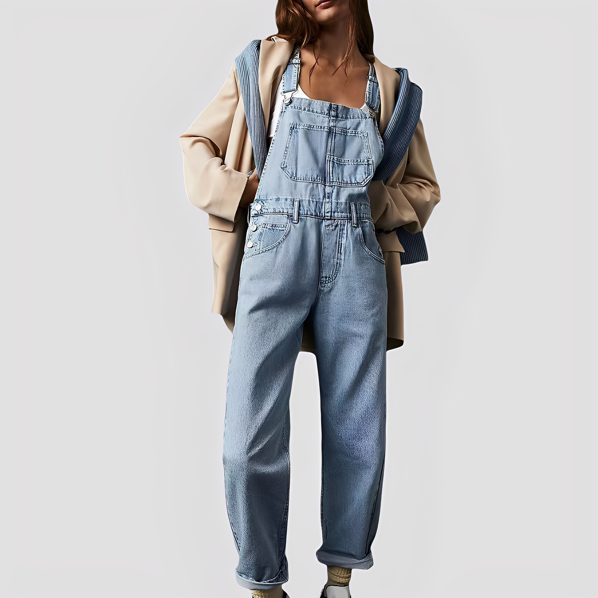 Mildred - Klasyczne, luźno dopasowane damskie dżinsowe ogrodniczki