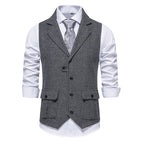 Rodney - Klasyczna męska kamizelka z jodełkowym wzorem na jeden guzik