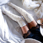 Shannon - Długie, ciepłe skarpety do kolan z ozdobną kulką dla kobiet