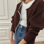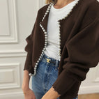 Vivien – Strickjacka z perłową dekoracją i frędzlami