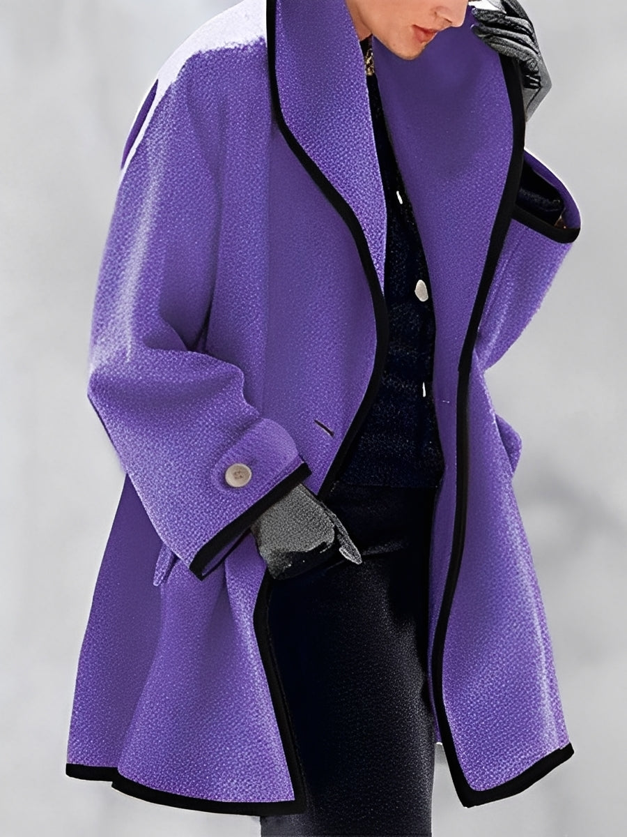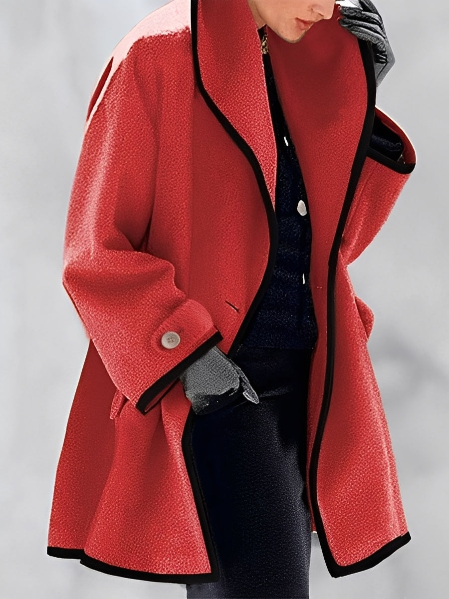 Whitney – Długi wełniany płaszcz retro łączy tradycyjny styl z nowoczesnymi detalami. Wykonany z wysokiej jakości wełny, zapewnia nie tylko przyjemne ciepło, ale też elegancję noszenia. Jego retro krój dodaje charakteru każdej stylizacji, czyniąc go doskonałym wyborem na zimniejsze dni. Dzięki swojej długości wygląda bardzo elegancko i podkreśla Twoją kobiecą sylwetkę.